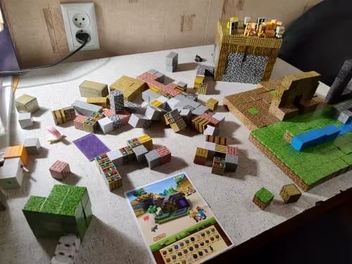 Parfait pour débuter : petites maisons, cabanes, véhicules et premières constructions.